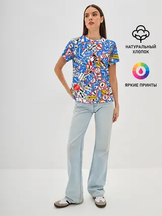 Актуальный дизайн, плотная ткань, сели отлично, хорошее качество На 122-128 взяли 134, ребёнок крепкий, но не полный. Крутой принт
