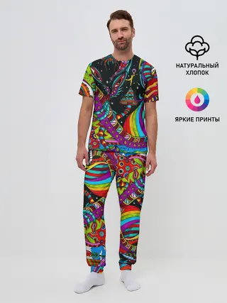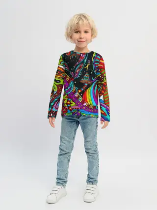 Актуальный дизайн, плотная ткань, сели отлично, хорошее качество На 122-128 взяли 134, ребёнок крепкий, но не полный. Крутой принт