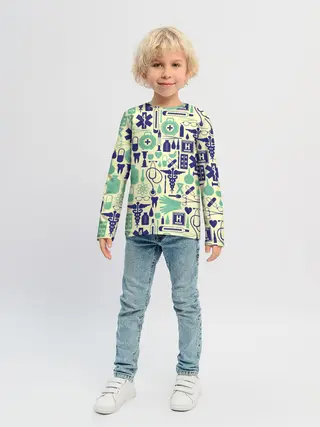 Актуальный дизайн, плотная ткань, сели отлично, хорошее качество На 122-128 взяли 134, ребёнок крепкий, но не полный. Крутой принт