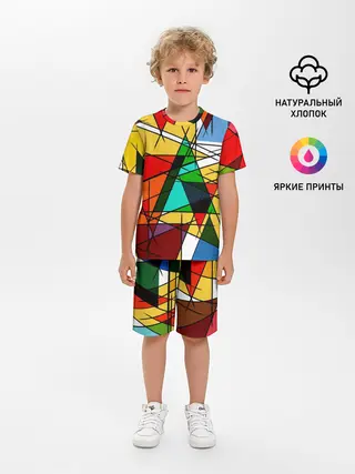 Актуальный дизайн, плотная ткань, сели отлично, хорошее качество На 122-128 взяли 134, ребёнок крепкий, но не полный. Крутой принт
