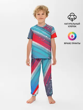 Актуальный дизайн, плотная ткань, сели отлично, хорошее качество На 122-128 взяли 134, ребёнок крепкий, но не полный. Крутой принт