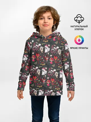 Актуальный дизайн, плотная ткань, сели отлично, хорошее качество На 122-128 взяли 134, ребёнок крепкий, но не полный. Крутой принт
