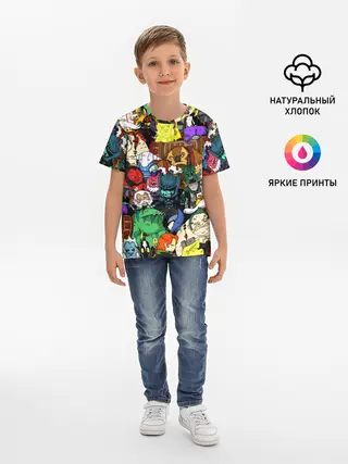 Актуальный дизайн, плотная ткань, сели отлично, хорошее качество На 122-128 взяли 134, ребёнок крепкий, но не полный. Крутой принт