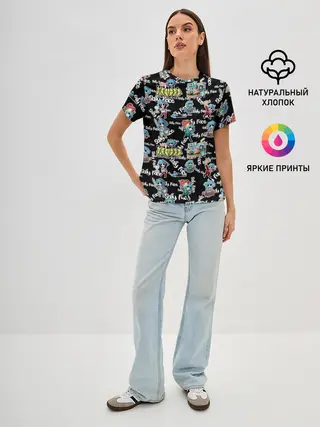 Актуальный дизайн, плотная ткань, сели отлично, хорошее качество На 122-128 взяли 134, ребёнок крепкий, но не полный. Крутой принт
