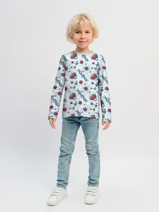 Актуальный дизайн, плотная ткань, сели отлично, хорошее качество На 122-128 взяли 134, ребёнок крепкий, но не полный. Крутой принт