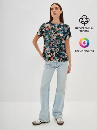 Актуальный дизайн, плотная ткань, сели отлично, хорошее качество На 122-128 взяли 134, ребёнок крепкий, но не полный. Крутой принт