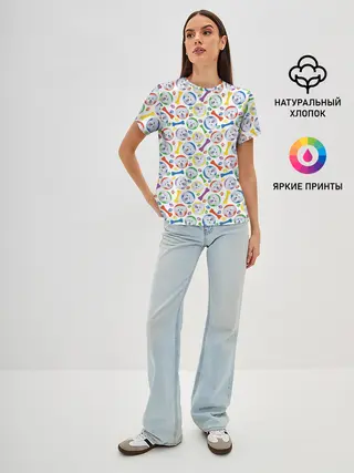 Актуальный дизайн, плотная ткань, сели отлично, хорошее качество На 122-128 взяли 134, ребёнок крепкий, но не полный. Крутой принт