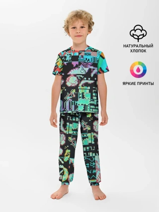 Актуальный дизайн, плотная ткань, сели отлично, хорошее качество На 122-128 взяли 134, ребёнок крепкий, но не полный. Крутой принт
