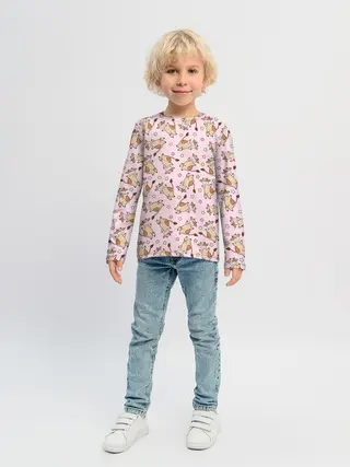 Актуальный дизайн, плотная ткань, сели отлично, хорошее качество На 122-128 взяли 134, ребёнок крепкий, но не полный. Крутой принт
