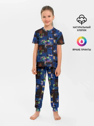 Актуальный дизайн, плотная ткань, сели отлично, хорошее качество На 122-128 взяли 134, ребёнок крепкий, но не полный. Крутой принт