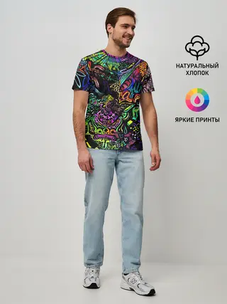 Актуальный дизайн, плотная ткань, сели отлично, хорошее качество На 122-128 взяли 134, ребёнок крепкий, но не полный. Крутой принт