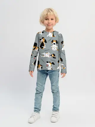 Актуальный дизайн, плотная ткань, сели отлично, хорошее качество На 122-128 взяли 134, ребёнок крепкий, но не полный. Крутой принт
