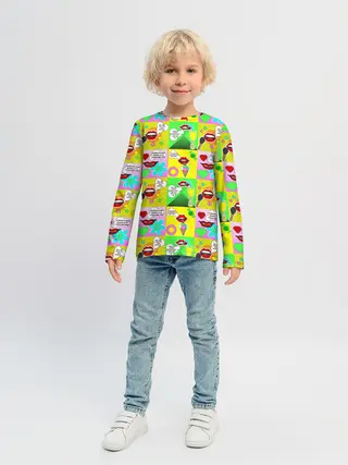 Актуальный дизайн, плотная ткань, сели отлично, хорошее качество На 122-128 взяли 134, ребёнок крепкий, но не полный. Крутой принт