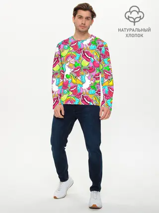Актуальный дизайн, плотная ткань, сели отлично, хорошее качество На 122-128 взяли 134, ребёнок крепкий, но не полный. Крутой принт