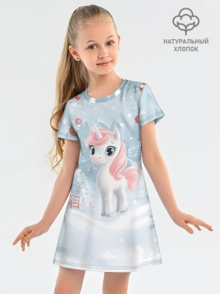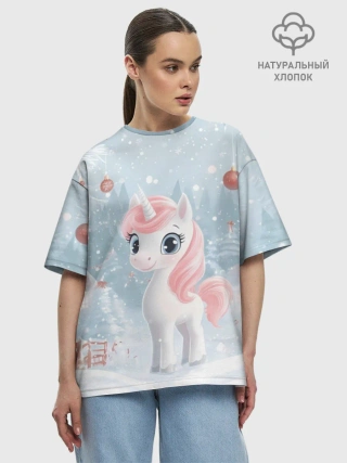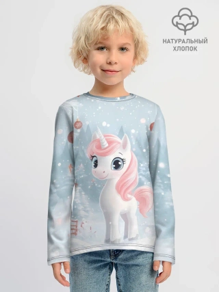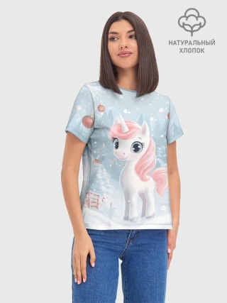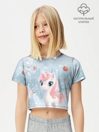 Футболка для девочки укороченная базовая хлопок / Пони Новый год