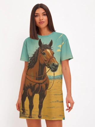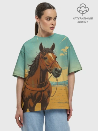 Женская футболка оверсайз хлопок / Loshad_v_pustine