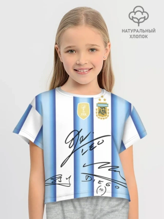 Футболка для девочки укороченная оверсайз хлопок / Аргентина автографы футболистов