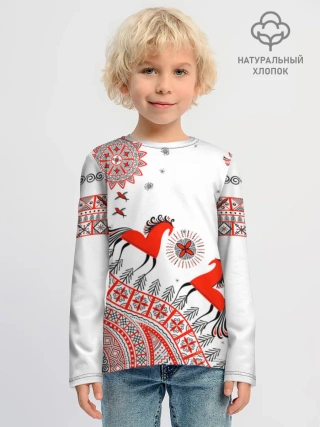 Детский лонгслив хлопок / Мезенская роспись Horse Kids