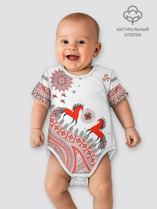 Детская футболка хлопок / Мезенская роспись Horse Kids