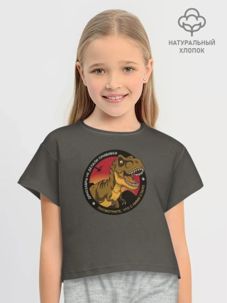 Футболка для девочки укороченная базовая хлопок / Динозавры не делали прививки 4 (русский)