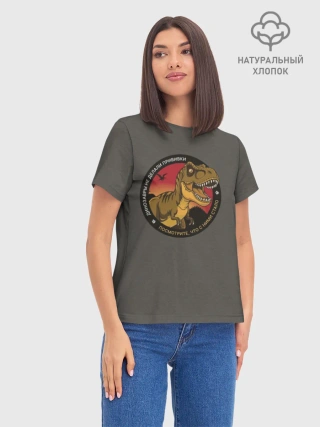 Женская базовая футболка хлопок / Динозавры не делали прививки 4 (русский)