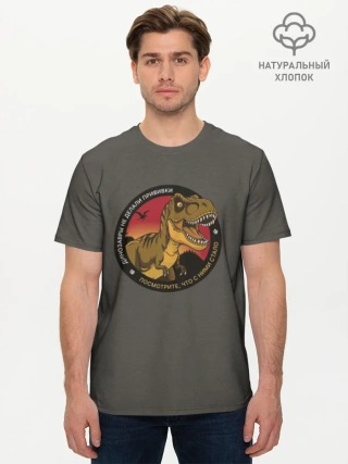 Мужская базовая футболка хлопок / Динозавры не делали прививки 4 (русский)