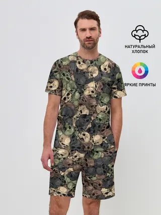 Мужской костюм с шортами / Камуфляж с черепами