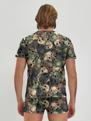 Мужские трусы с футболкой / Камуфляж с черепами
