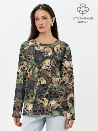 Лонгслив женский. Хлопок / Камуфляж с черепами