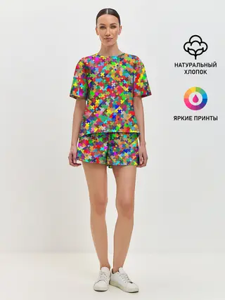 Женская пижама с шортами / РАЗНОЦВЕТНЫЙ ПАЗЛ