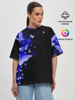 Женская футболка оверсайз / СИНИЕ БАБОЧКИ