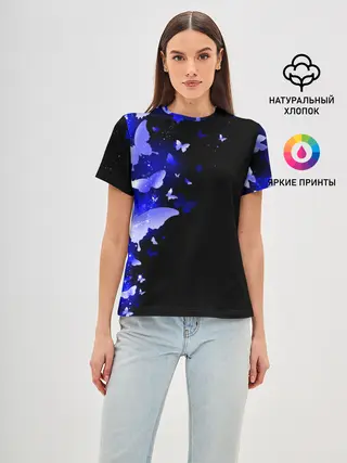 Женская базовая футболка / СИНИЕ БАБОЧКИ