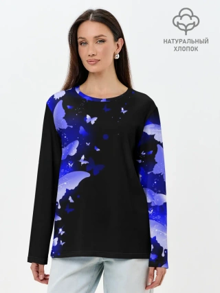Лонгслив женский. Хлопок / СИНИЕ БАБОЧКИ