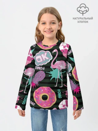 Детский лонгслив / Пончики, мопсы и фламинго.
