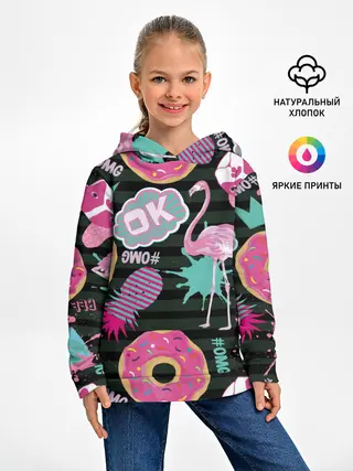 Детское худи / Пончики, мопсы и фламинго.