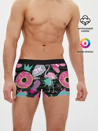 Мужские трусы боксеры / Пончики, мопсы и фламинго.