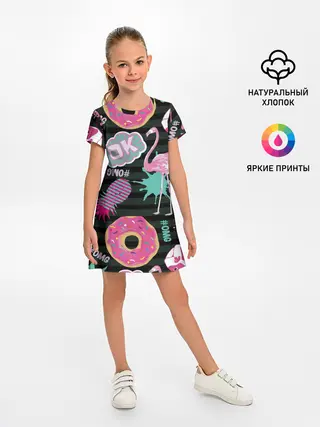 Детское платье / Пончики, мопсы и фламинго.