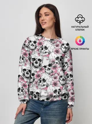 Женский свитшот / Черепа в цветах