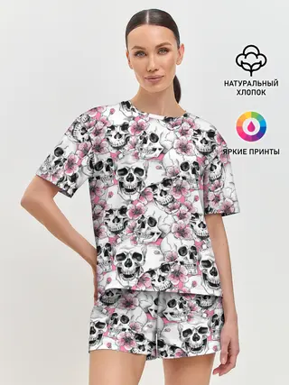 Женская пижама с шортами / Черепа в цветах