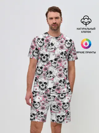Мужской костюм с шортами / Черепа в цветах