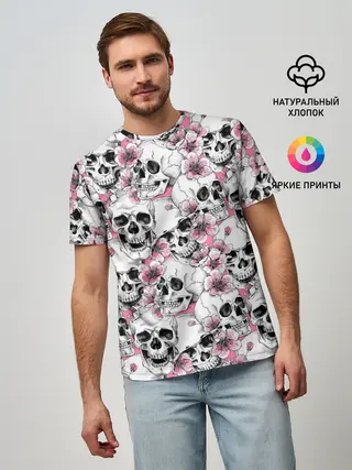 Мужская базовая футболка / Черепа в цветах