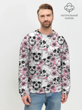 Мужской свитшот базовый / Черепа в цветах