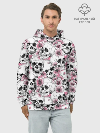 Худи мужской база хлопок / Черепа в цветах