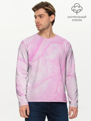 Мужской лонгслив базовый / розовые разводы краска зефир