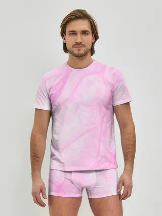 Мужские трусы с футболкой / розовые разводы краска зефир