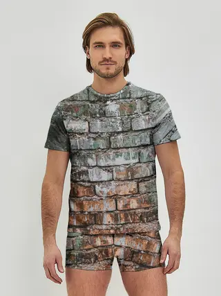 Мужские трусы с футболкой / кирпичная стена потеки краска