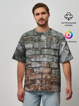 Мужская футболка оверсайз / кирпичная стена потеки краска