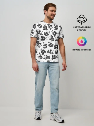 Мужская базовая футболка / Акварельные панды паттерн