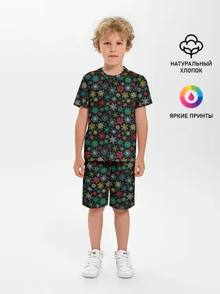 Детская пижама с шортами / Разноцветные Снежинки