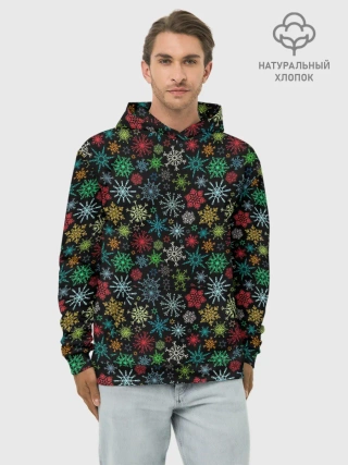 Худи мужской база хлопок / Разноцветные Снежинки